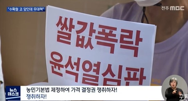 한편 통계청이 발표한 산지 쌀값은 지난해 10월부터 올해 9월까지 34차례의 발표 과정에서 단 한 차례도 반등하지 않은 가운데 지난 8월 15일 기준 전국 산지 쌀값은 20㎏들이 정곡 1포대당 4만 2,522원에 그쳐 전년 동기대비 24%(1만 3,108원) 급락한 것으로 나타났다.