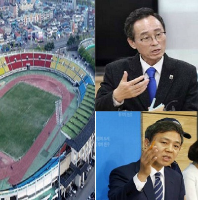 종합경기장 개발에 롯데 들어오지 않게 하겠다더니?