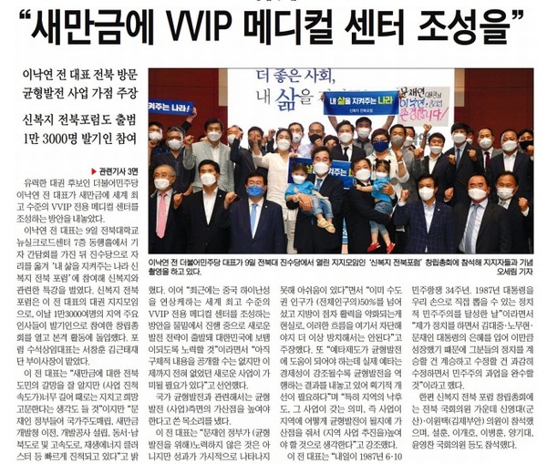 전북일보 6월 10일 1면 기사.