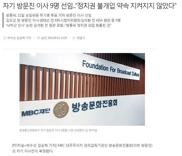 방문진 이사 9명 선임..."정치권 불개입 약속 지켜지지 않았다" 비판