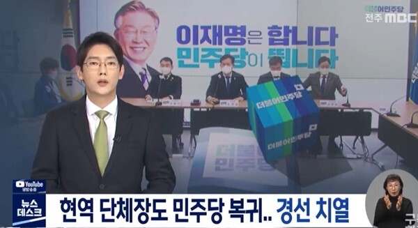 신문은 또 민주당 이재명 대통령 후보자 직속 국가인재위원회가 전북 출신 언론인인 이정헌 JTBC 앵커를 영입했다는 보도를 내보내 시선을 끌었다. "이 앵커는 이재명 후보 선대위 공보단 대변인으로 후보 메시지와 공약을 전달하는 역할을 할 것"이라고 전한 기사는 "이 앵커가 최근 사고지역구인 전주을지역위원회 위원장 후보로 거론되기도 했다"고 보도했다.