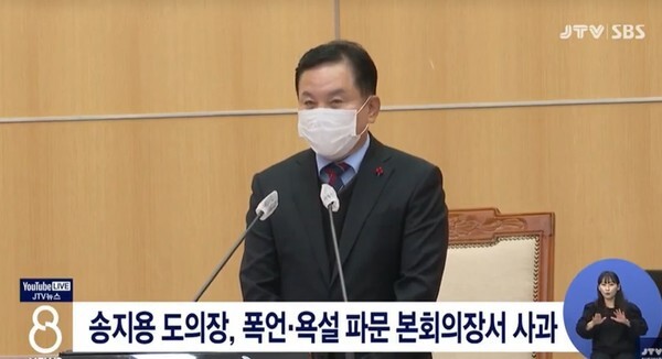 앞서 '송지용 도의회 의장에게 인권침해를 당했다'고 밝힌 김인태 도의회 사무처장(2급)은 지난달 25일 입장문을 내고 “도의회를 관리하는 사무처장으로서 막중한 책임감과 참담한 심정으로 이 글을 올린다”며 “이번 사태 이후 제가 도의회 인사권 장악을 위해 이번 일을 벌였다는 터무니없는 2차 가해가 이뤄지고 있다”고 밝힌 바 있다.
